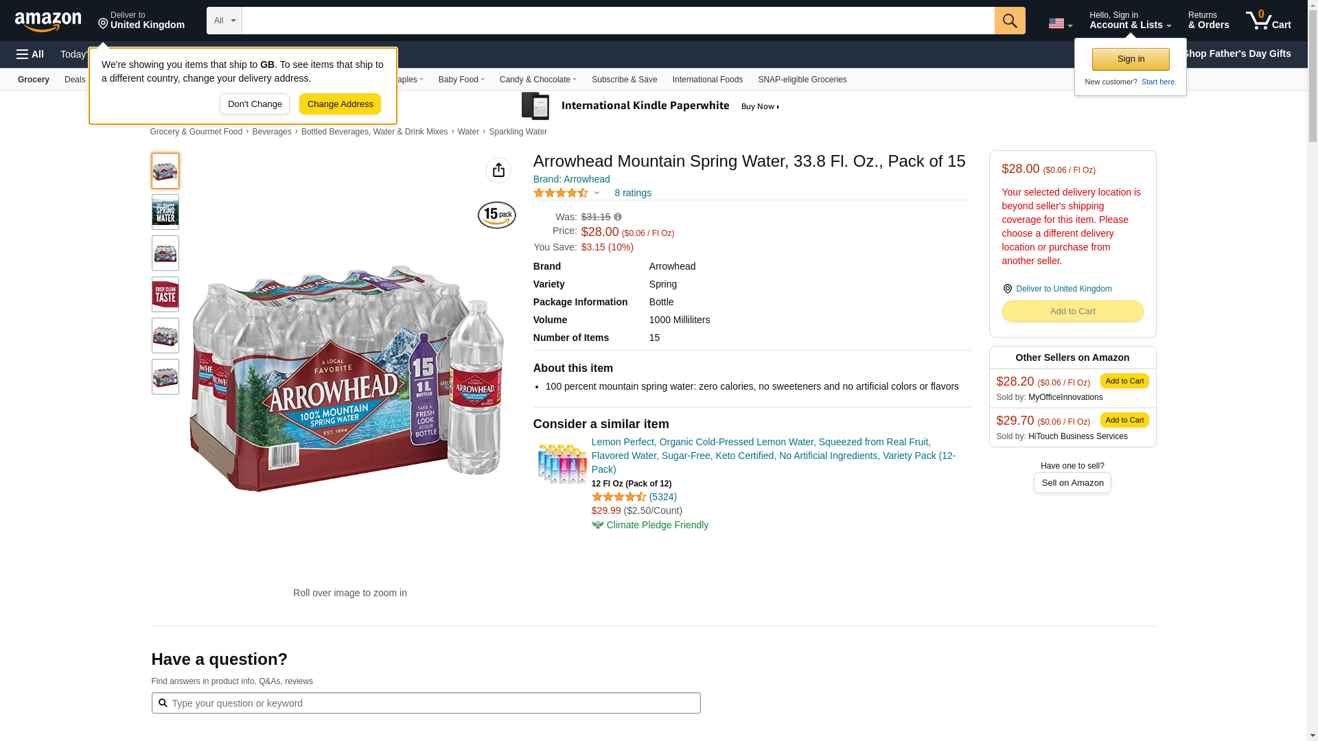 Arrowhead Mountain Spring Water, 33.8 Fl. Oz., Pack of 15
