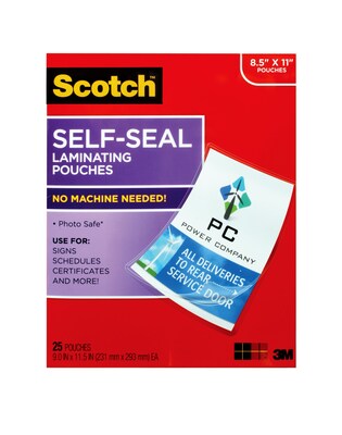 Scotch Self-Sealing Laminating Pouches, 9.5 mil, 8 1/2 x 11, 25/Pack