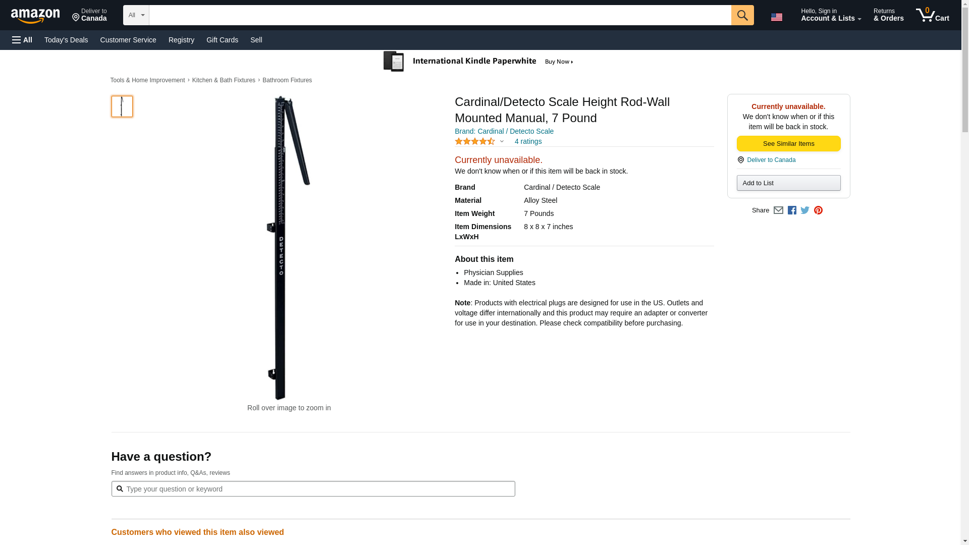 Cardinal/Detecto Scale Height Rod-Wall Mounted Manual, 7 Pound