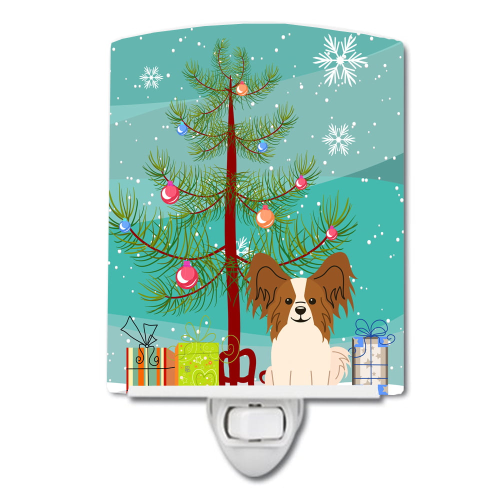 Carolines Treasures BB4203CNL Merry Christmas Tree Papillon Red White Ceramic Night Light