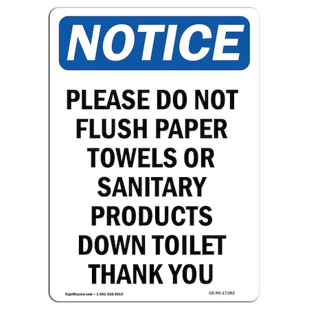 OSHA Notice Sign, Please Do Not Flush Paper Towels, 24in X 18in Rigid Plastic