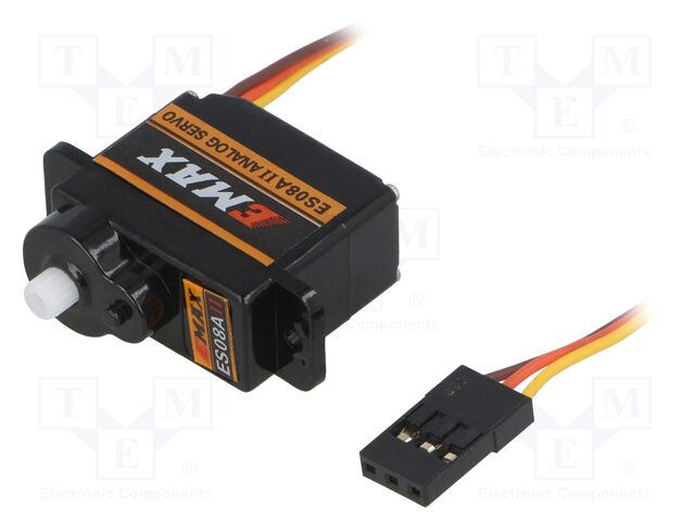 As an Amazon Associate, we earn from qualifying purchases. EMAX EMX-SV-0273 | Motor: servo; 4.8?6VDC; micro; analogue; 23x11.5x24mm; plastic EMAX . EMX-SV-0273 Gallery Attributes Brand name, Manufacturer name, Manufacturer, Attribute00EMAX Attribute01servo Attribute02micro Attribute03analogue Attribute0423x11.5x24mm Attribute05plastic Attribute06100ms/60? (6V), Attribute071,5 kg/cm (4,8V), Attribute08JR Attribute09product is not a working device, but only component AttributeKey00Manufacturer AttributeKey01Type of motor AttributeKey02Size AttributeKey03Servo kind AttributeKey04Dimensions AttributeKey05Gears material AttributeKey06Speed AttributeKey07Torque AttributeKey08Connector AttributeKey09Information CategoryL1Robotics and Prototyping CategoryL2Micromotors and Accessories CategoryL3Servo Motors Extra Product NameEMAX EMX-SV-0273 | Motor: servo; 4.8?6VDC; micro; analogue; 23x11.5x24mm; plastic atoms, moq, multiple1 jsonUrlDatae9242177491103caeced41d3cc8127ef. jsonUrlData200a897196ad52045a3d9 keywordsEMAX, EMX-SV-0273, ES08AII MPNEMX-SV-0273 qtyInStock0 SKUES08AII snippetEMAX EMX-SV-0273 | Motor: servo; 4.8?6VDC; micro; analogue; 23x11.5x24mm; plasti Distributor offers SellerSKUMOQIn stockMultiplePrices TMEES08AII11
