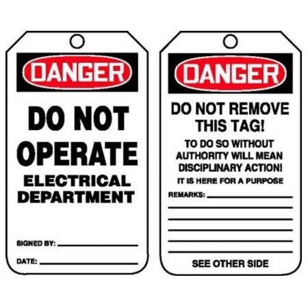 Order MDT165PTM by Accuform RP-Plastic Tag "Do Not Operate Electrical..." - US Mega Store