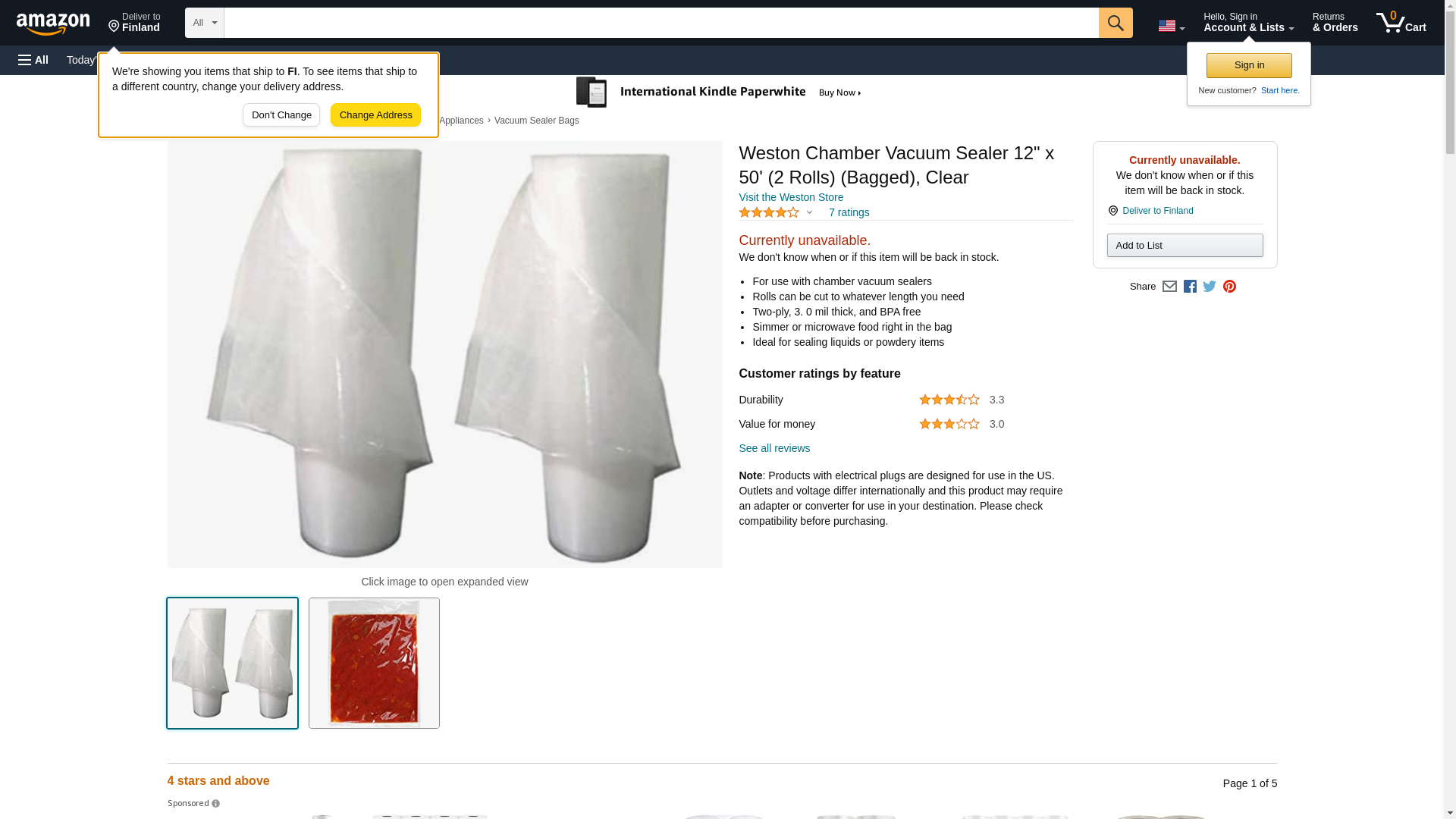 Weston Chamber Vacuum Sealer 12" x 50' (2 Rolls) (Bagged), Clear