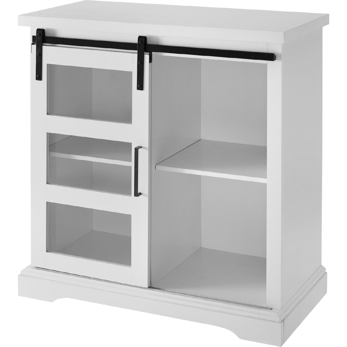 Walker Edison Weston Modern Farmhouse Sliding Glass Door Storage Console, 32 Inch, White