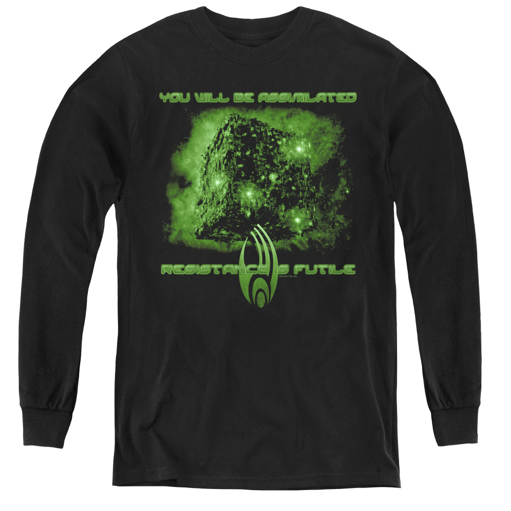 Trevco CBS529-YL-3 Star Trek & Assimilate - Youth Long Sleeve Tee, Black - Large