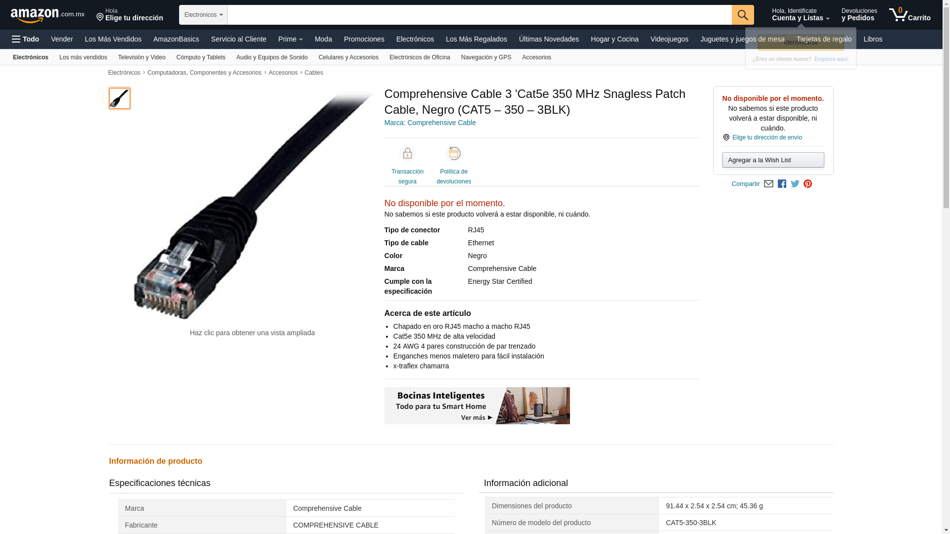 CAT5-350-3BLK Color: Black Features: -Molded Boot. -Unshielded twisted pair (UTP). -UL rated and meets all 568A and 568B TIA/EIA standards. -3 feet long. Product Type: -Ethernet Cables. Length of Cable: -1' - 3'. Dimensions: Overall Length: -36 Inches.