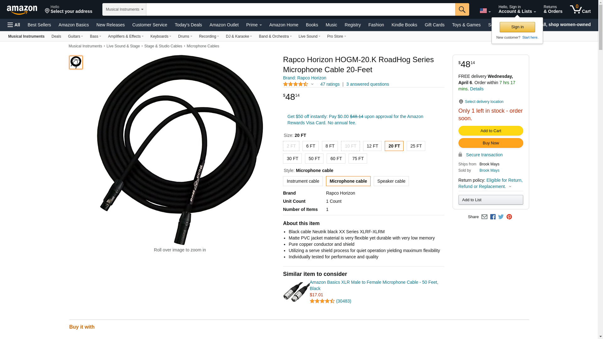 Buy the Rapco HOGM-20.K, 20' Roadhog Series XLRF to XLRM Microphone Cable at Full Compass Systems. 0% Financing and Free Shipping on thousands of items!