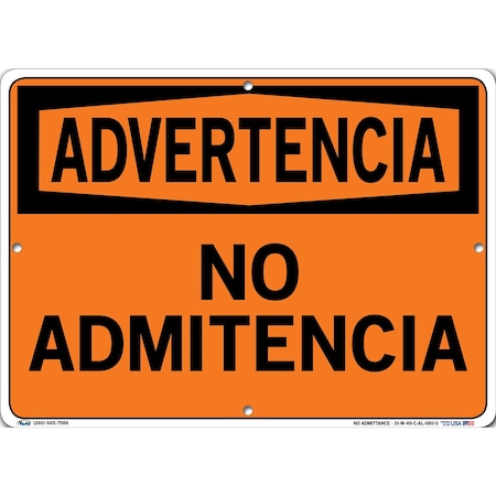 Vestil SI-W-49-C-AL-080-S NO ADMITTANCE/NO ADMITENCIA Warning Sign, Aluminum, 0.080" Overall Size, 14.5" W x 10.5" H
