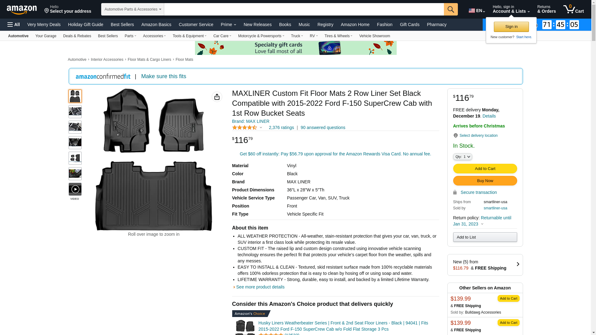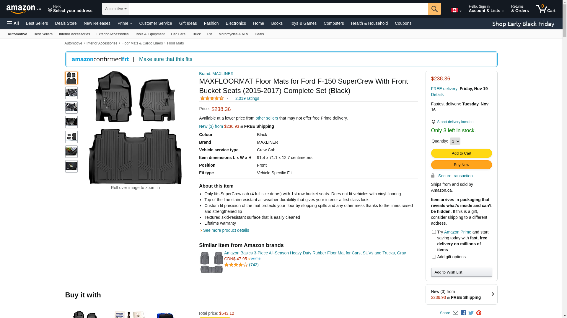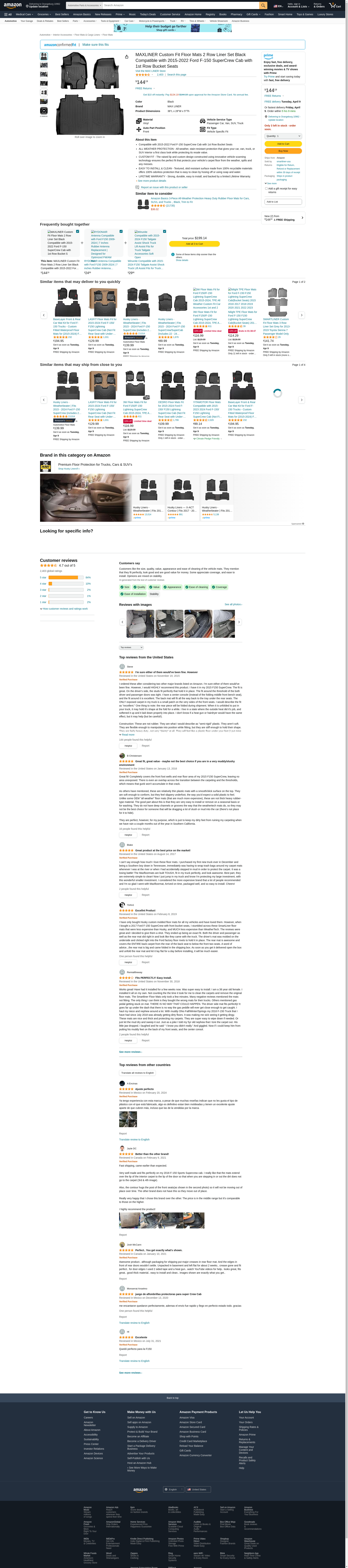 | Feature | MAXFLOORMAT Floor Mats for Ford F-150 SuperCrew With Front Bucket Seats (2015-2017) Complete Set (Black) |