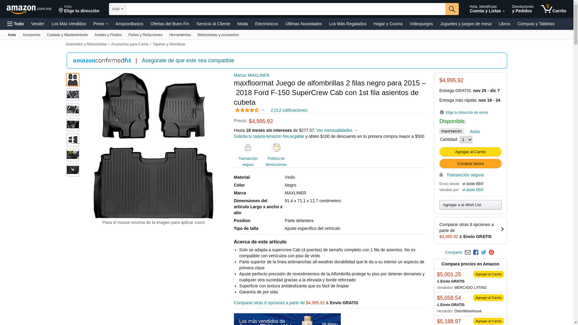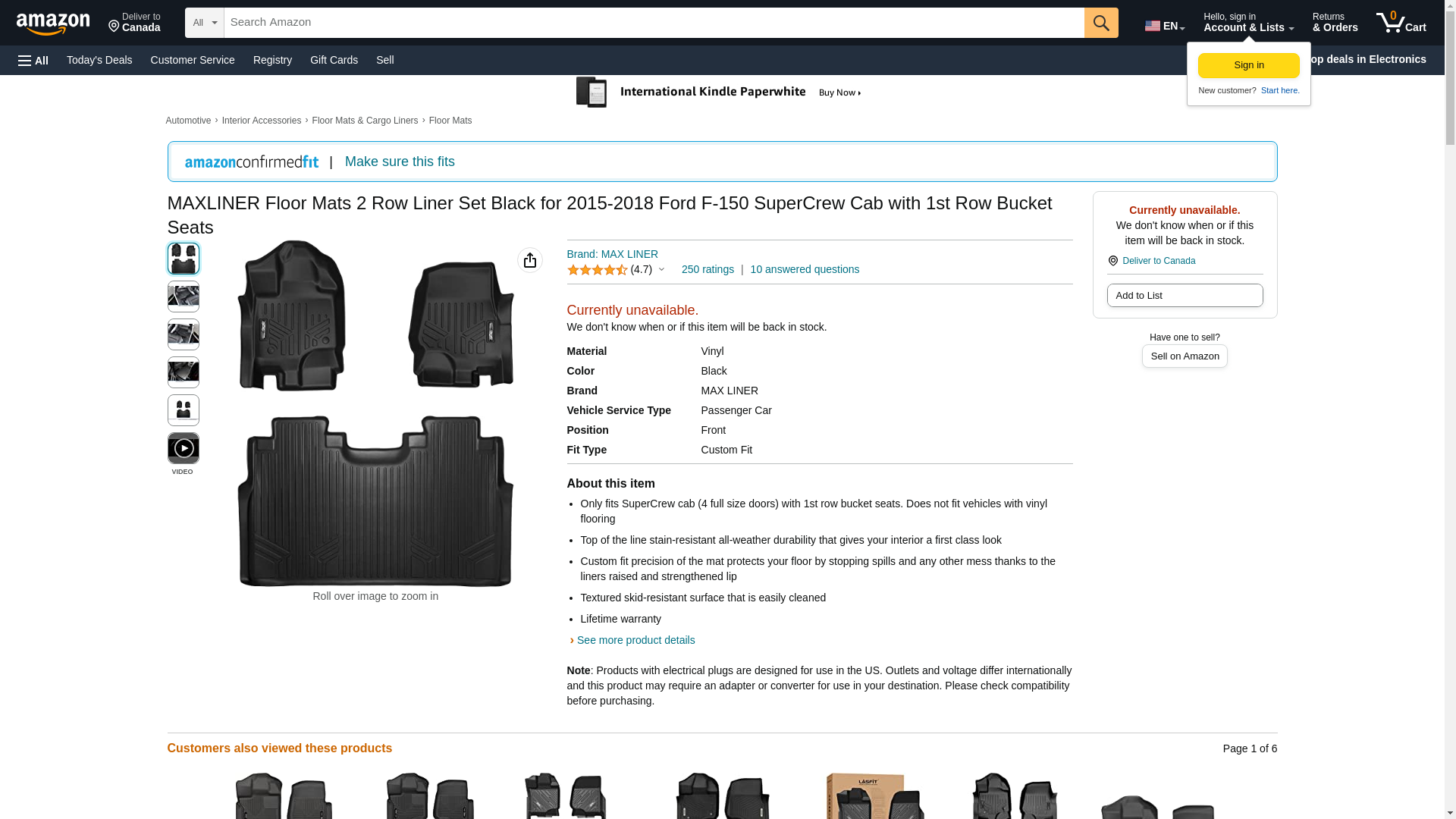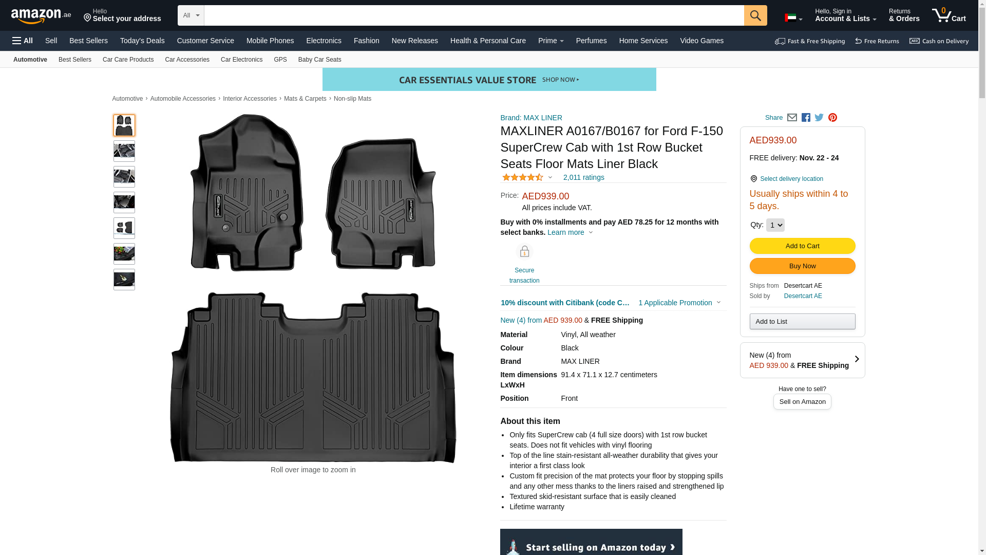 | Feature | MAXFLOORMAT Floor Mats for Ford F-150 SuperCrew With Front Bucket Seats (2015-2017) Complete Set (Black) |