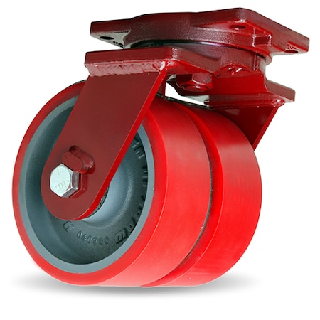 Hamilton Extra Heavy Duty Dual Wheel Caster - 8"Dia.X3"W Wheel - 6000-Lb. Capacity - Ultralast Polyurethane Wheel - Precision Ball Bearing - Swivel - Red