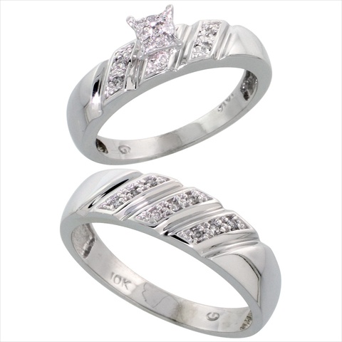 World Jewels 14K White Gold Diamond Ring Set - Engagement Ring & Mens Wedding Band With .12 Ct. Brilliant Cut Diamonds&#