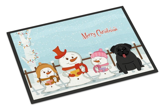 Caroline's Treasures BB2337JMAT Merry Christmas Carolers Pug Black Door Mat, Indoor Rug or Outdoor Welcome Mat 24x36 Doormat, 36" L x 24" W, Multicolor