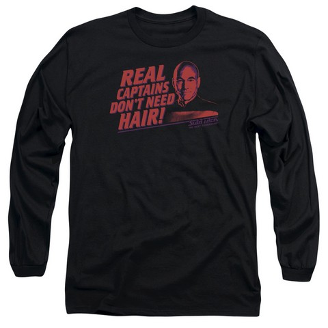 Trevco Star Trek-Real Captain - Long Sleeve Adult 18-1 Tee - Black, 2X