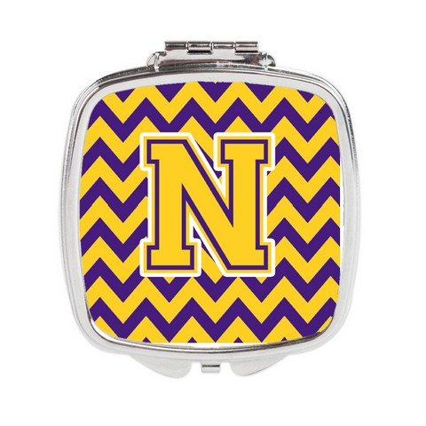 Carolines Treasures CJ1041-NSCM Letter N Chevron Purple & Gold Compact Mirror, 3 x 0.3 x 2.75 in.