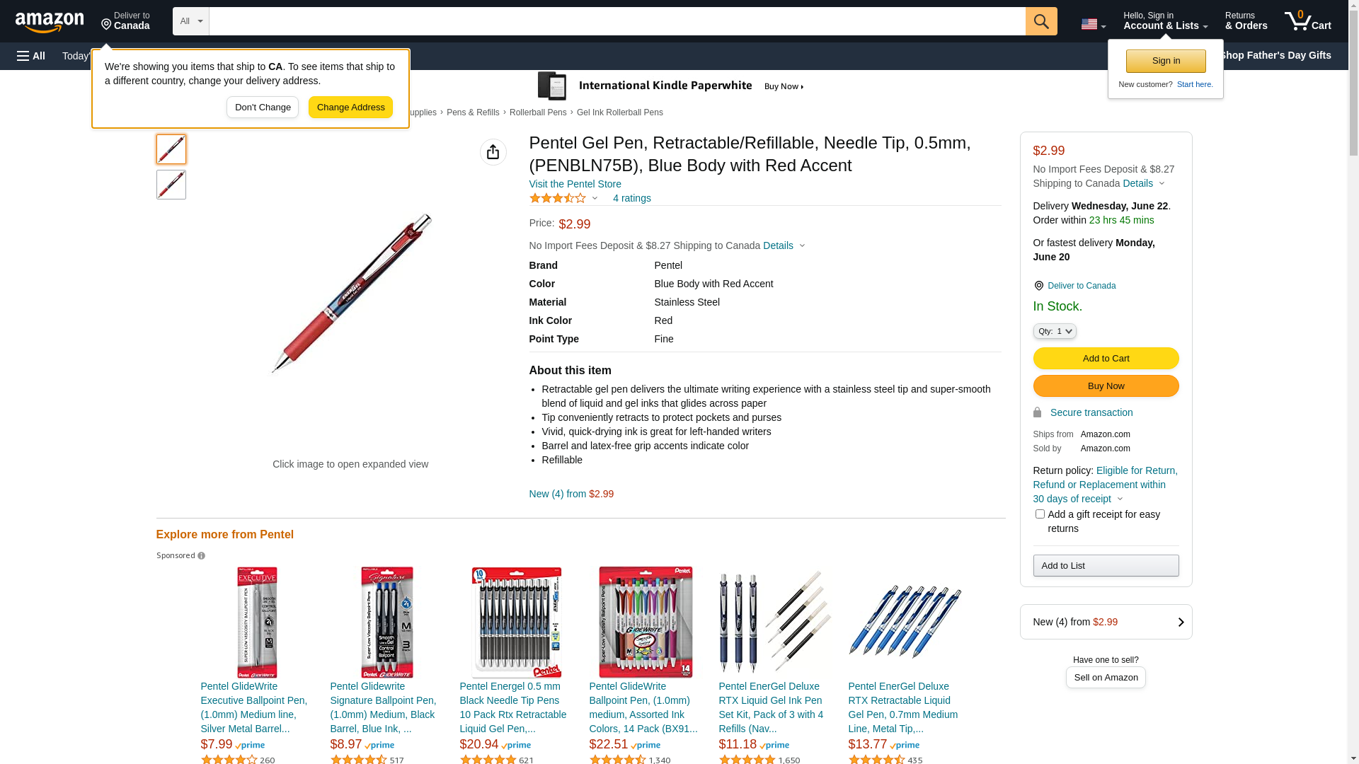 - Pentel Gel Pen,Retractable/Refillable,Needle Tip.5mm,RD/RD Ink