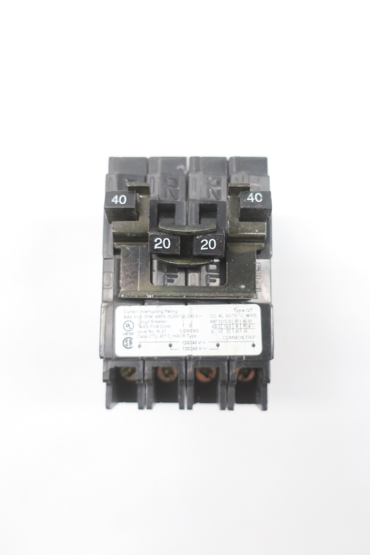 Siemens Q24020CT2 One 20-Amp One 40-Amp Double Pole Circuit Breaker