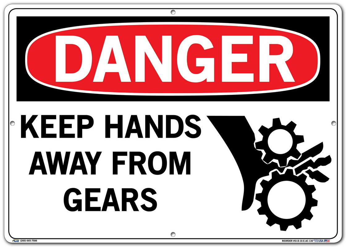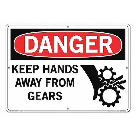 Vestil SI-D-10-E-AC-130 KEEP HANDS AWAY FROM GEARS Danger Sign, Aluminum Composite, 0.130" Overall Size, 20.5" W x 14.5" H