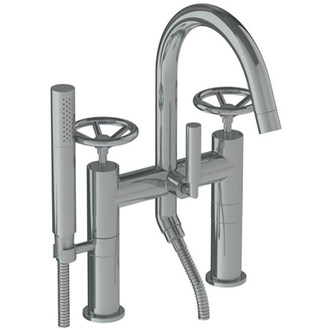 WATERMARK 31-8.2-BK-SG BROOKLYN 8 7/8 INCH THREE HANDLE DECK MOUNT EXPOSED TUB FILLER WITH HANDSHOWER, SATIN 24K...