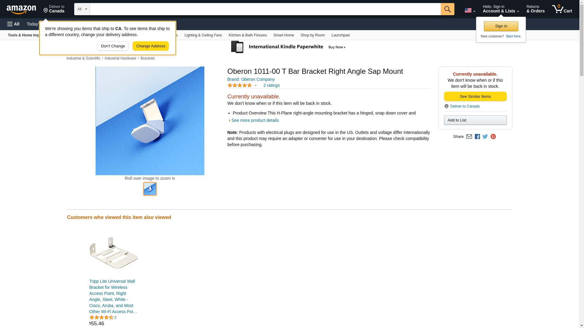 Oberon 1011-00 T Bar Bracket Right Angle Sap Mount