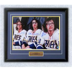 Autograph Authentic HANB001360 23 x 27 in. Slap Shot Movie Hanson Brothers Triple Signed Post Fight Bloody Frame
