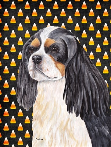 Carolines Treasures SC9192CHF Cavalier Spaniel Tricolor Candy Corn Halloween Portrait Flag Canvas - House Size