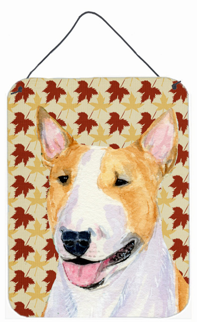 Carolines Treasures SS4360DS1216 12 x 16 in. Bull Terrier Fall Leaves Portrait Aluminum Metal Wall & Door Hanging Prints