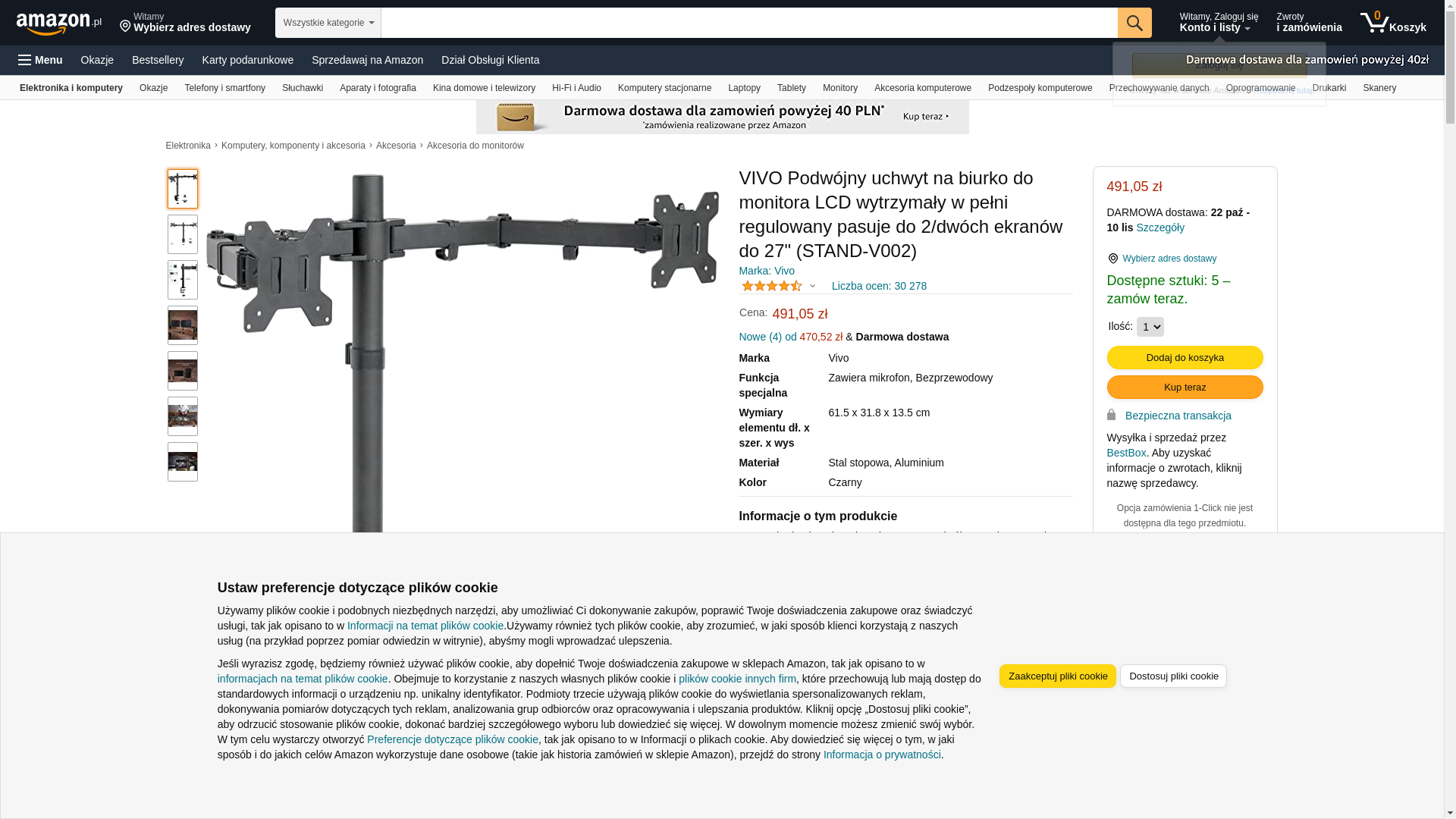 | Feature | COMPATIBILITY - Dual monitor mount fitting two screens 13" to 27" in size and 22 lbs in weight each with 75x75mm or 100x100mm backside mounting holes |