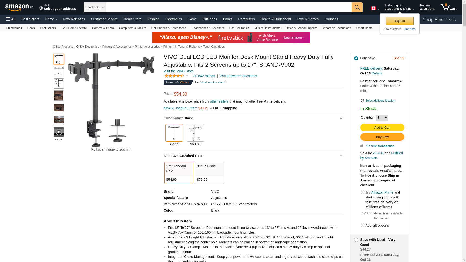 VIVO STAND-V002 DUAL MONITOR DESK MOUNT, BLACK