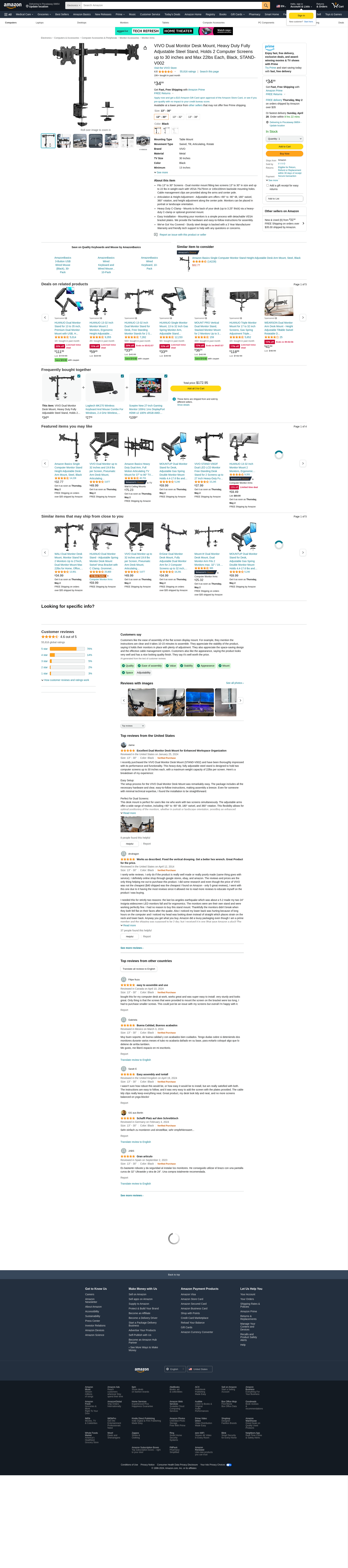 VIVO Dual Monitor Desk Mount, Heavy Duty Fully Adjustable Steel Stand, Holds 2 Computer Screens up to 30 inches and Max 22lbs Each, Black, STAND-V002