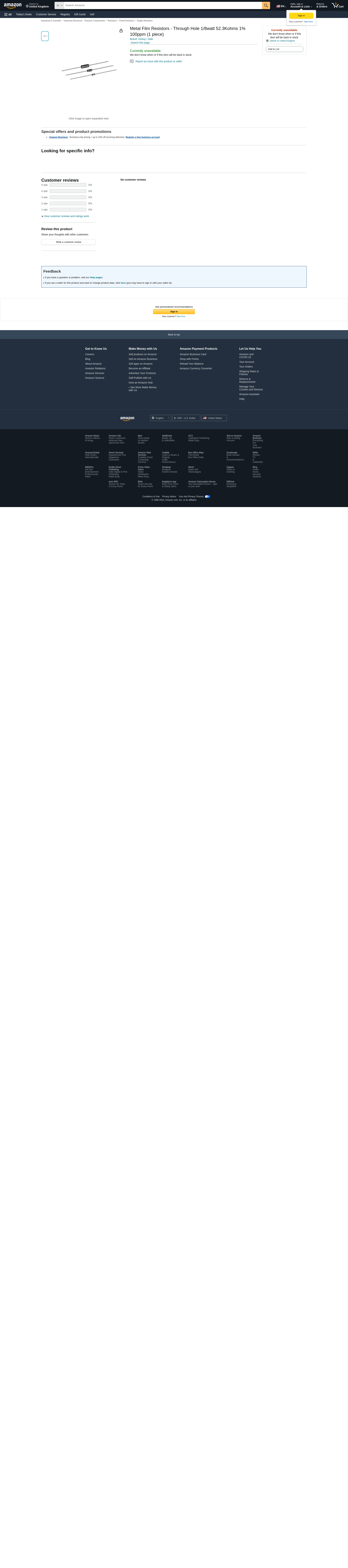 Metal Film Resistors - Through Hole 1/8watt 52.3Kohms 1% 100ppm (10 pieces)