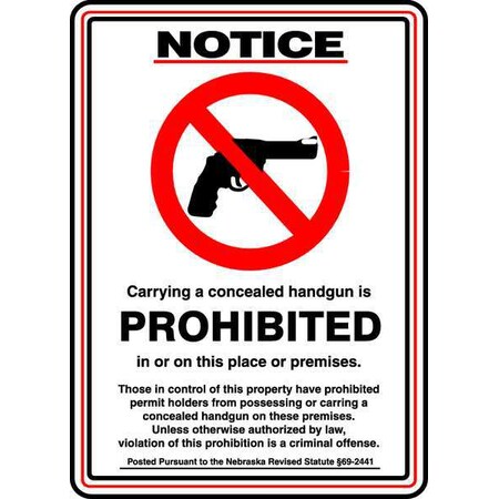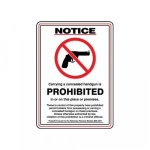 - Communicates the prohibition of concealed handguns pursuant to Nebraska Revised Statute Section 69-2441