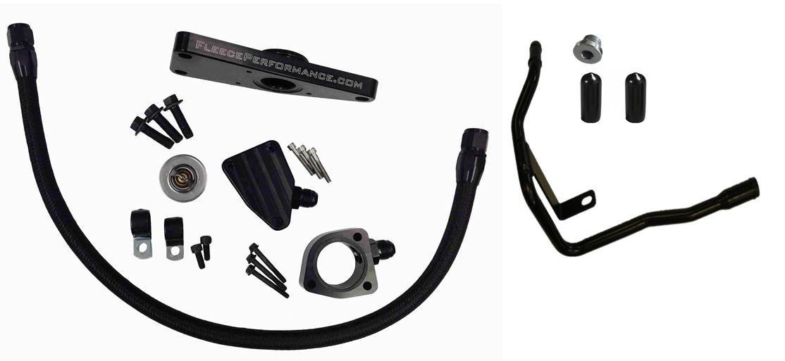Another product from Fleece Performance built out of necessity is the 2003-2013 Cummins Coolant Bypass kit. The Cummins engine cooling system was designed to adequately cool a 300-350hp engine. When the horsepower is increased there is an increased demand on the cooling system. The rear cylinders suffer from a lack of coolant flow, and therefore, experience the highest coolant temperatures. This can cause excessive pressure to build in the system, especially the rear of the block and possibly blow out freeze plugs externally, or the smaller diameter plugs under the valve cover, leading to a failure. Weve designed our coolant bypass kit with a secondary thermostat, that unlike other brands, works based on temperature instead of excessive pressure. This solves the problem before pressure becomes an issue by ensuring consistent temperatures across all six cylinders.