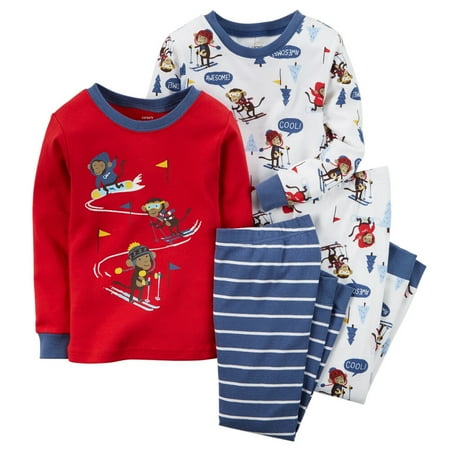 Carter's Baby Clothing Outfit Boys 4-Piece Snug Fit Cotton PJs Ski Monkey Print 9M