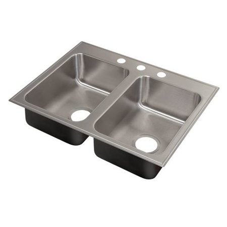JTM1031 <br /> <b>Features</b> <br /> <ul> <li>18 Gauge type- 316 stainless steel</li> <li>Seamless die-drawn construction</li> <li>Exposed surfaces polished with a hand-blended just finish</li> <li>Fully coated underside</li> <li>Grip-rim plus self-rimming stainless steel mounting channels</li> <li>Conforms to ASME and ANSI A112.19.3M and drain punch #35</li> <li>Installation Type: Drop-In</li> <li>Finish: Stainless steel</li> <li>Material: Stainless steel</li> <li>Number of Basins: 2</li> <li>Basin Split: 50/50</li> <li>Sink Shape: Rectangular</li> <li>Number of Faucet Holes: 3</li> <li>Country of Manufacture: United States</li> </ul> <br /> <b>Dimensions</b> <br /> <ul> <li>Overall Sink Depth - Top to Bottom: 8"</li> <li>Overall Length - Side to Side: 33"</li> <li>Overall Width - Front to Back: 22"</li> <li>Overall Product Weight: 22 lbs</li> </ul>