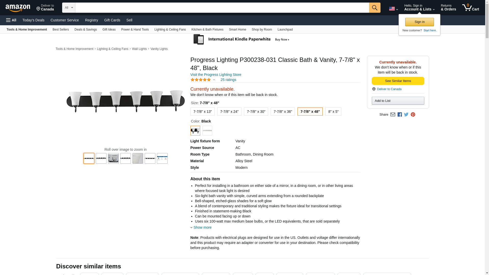 Progress Lighting P300238-031 Classic Bath & Vanity, 7-7/8" x 48", Black
