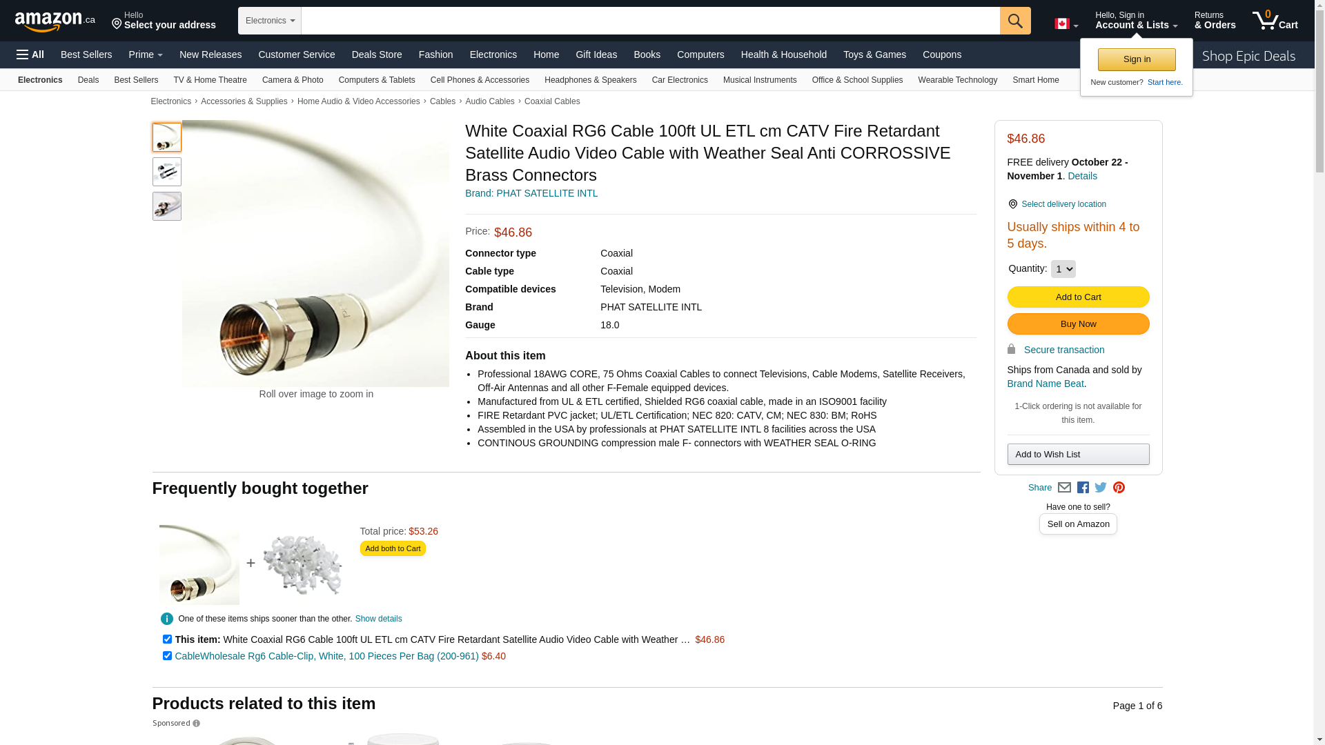 White Coaxial RG6 Cable 100ft UL ETL cm CATV Fire Retardant Satellite Audio Video Cable with Weather Seal Anti CORROSSIVE Brass Connectors: Maxedbuy.com
