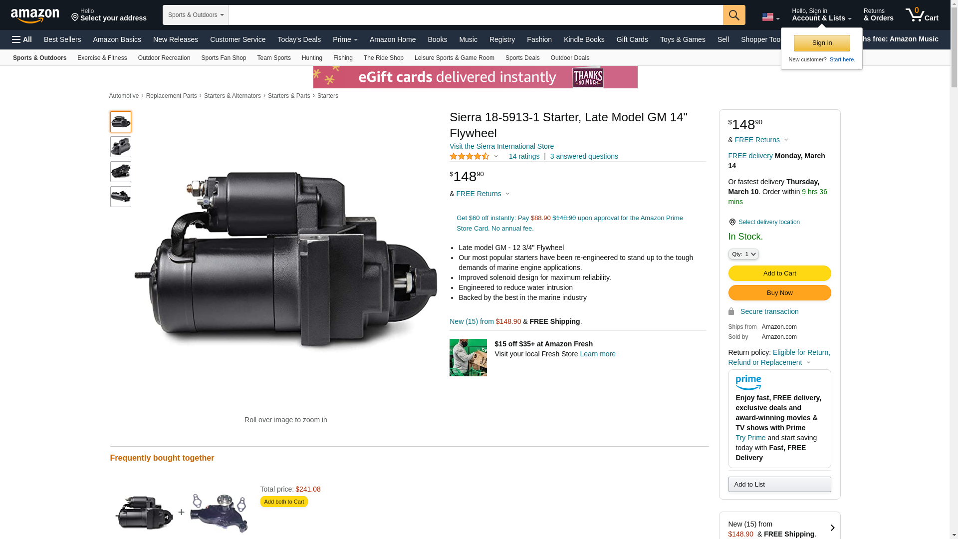Sierra 18-5913-1 Starter, Late Model GM 14" Flywheel