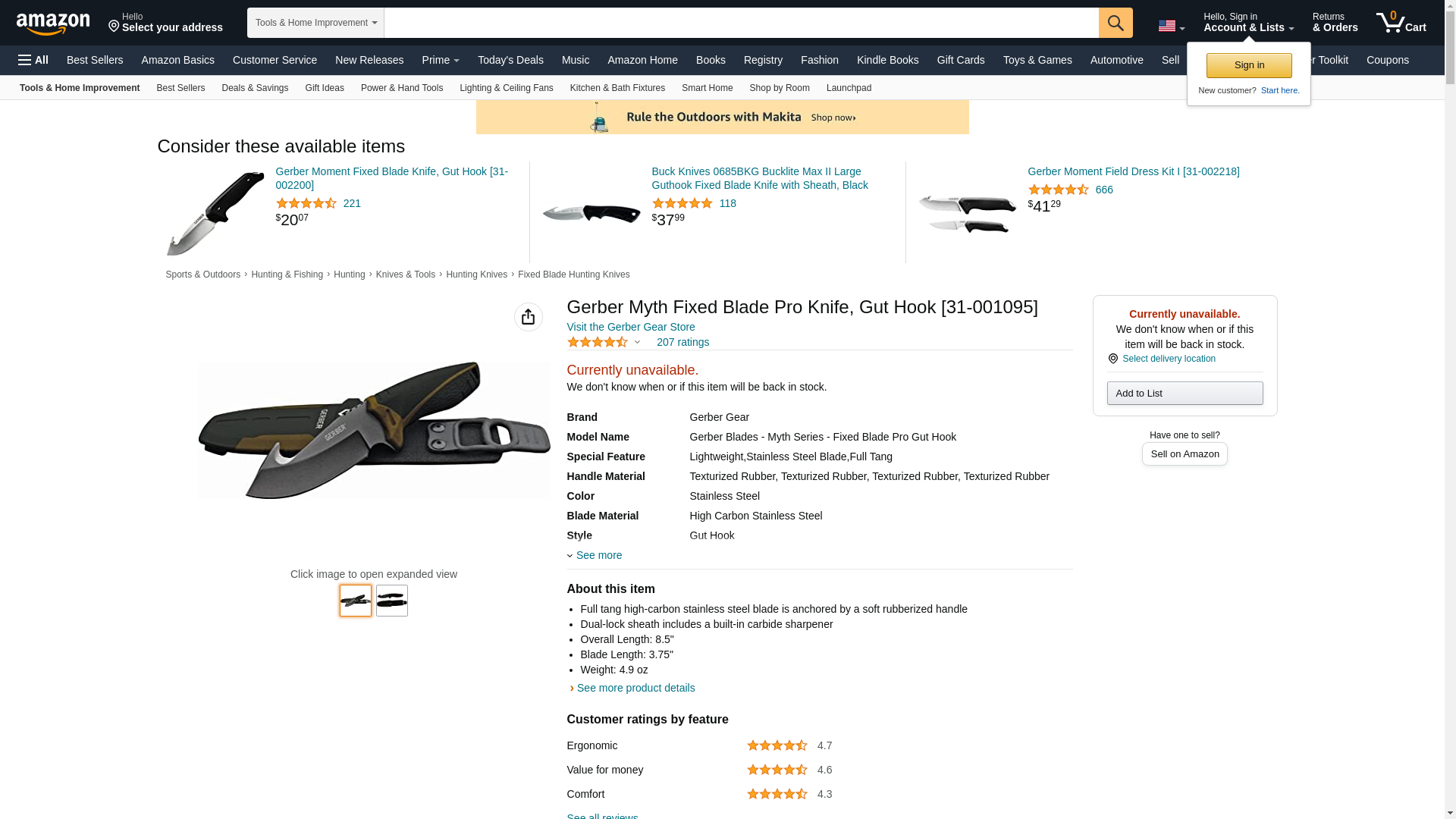 Gerber Myth Fixed Blade Pro Knife, Gut Hook [31-001095]