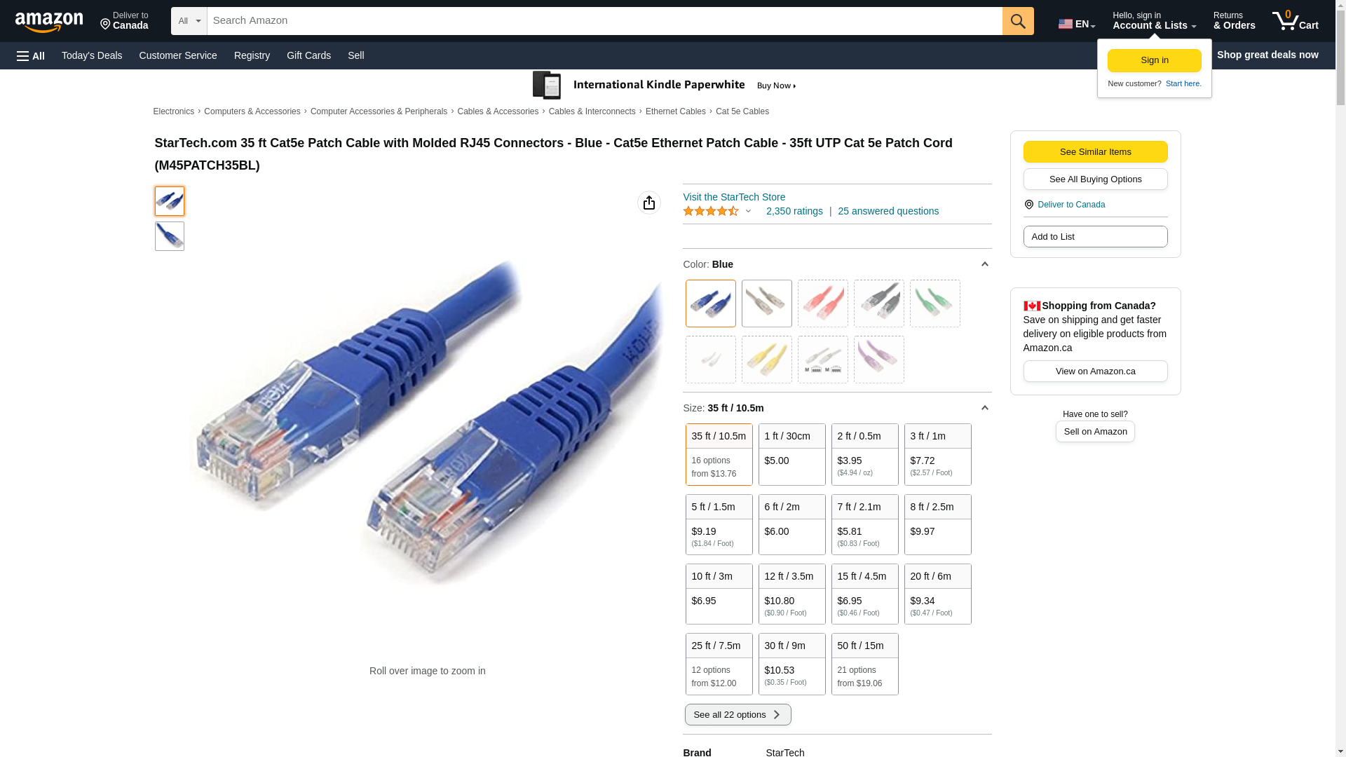 StarTech.com 35 ft Cat5e Patch Cable with Molded RJ45 Connectors - Blue - Cat5e Ethernet Patch Cable - 35ft UTP Cat 5e Patch Cord (M45PATCH35BL) - patch cable - 10.7 m - blue | Grand & Toy