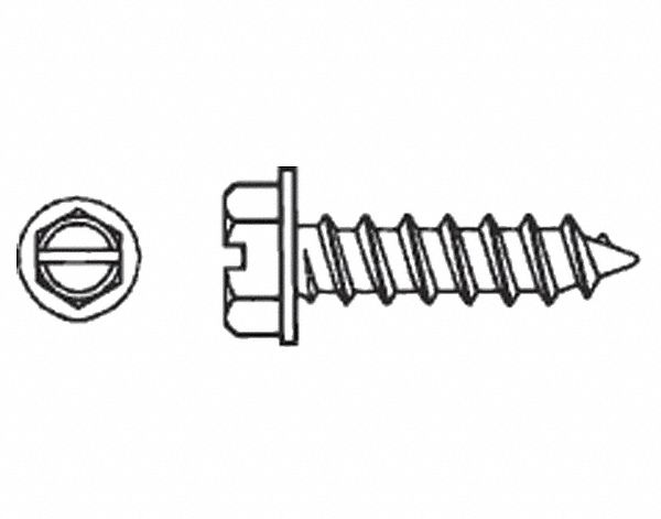 TAPPING SCREW, TYPE A, HEX/SLOT/INDENT WASHER, SZ 14 X 1 IN L, 18.8 STAINLESS STEEL, PKG 50