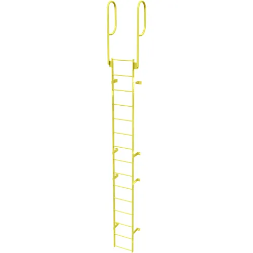 Tri Arc Mfg 15 Step Steel Walk Through With Handrails Fixed Access Ladder, Yellow - WLFS0215-Y