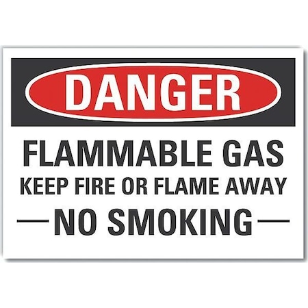 Flammable Gas Danger Label, Horizontal Rectangle, Number of Printed Sides 1, English, Sign Format Traditional OSHA, Sign Legend Flammable Gas Keep Fire Or Flame Away No Smoking, Sign Legend Background Color White, Sign Legend Style Text