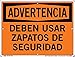 Vestil SI-W-42-B-AL-063-S SAFETY SHOES MUST BE WORN/DEBEN USAR ZAPATOS DE SEGURIDAD Warning Sign, Aluminum, 0.063" Overall Size, 12.5" W x 9.5" H