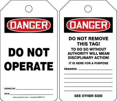 Order MDT189PTM by Accuform 5-3/4" x 3-1/4" RP-Plastic Tag "Do Not Operate" - US Mega Store
