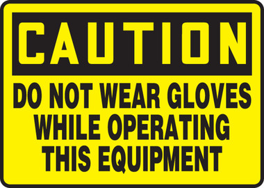 OSHA Caution Safety Sign: Do Not Wear Gloves While Operating This Equipment 10" x 14" Aluminum 1/Each - MEQM692VA - Jendco Safety Supply