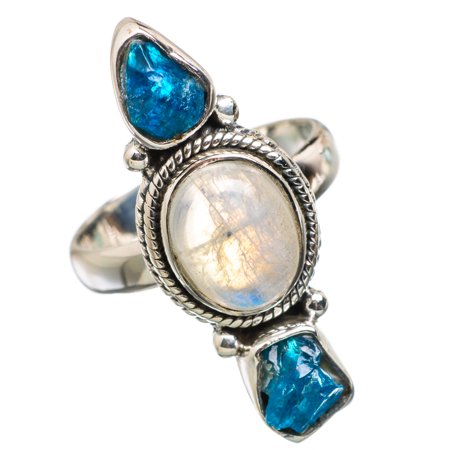 Talented artisans at Ana Silver Co. masterfully handcrafts each piece of jewelry you see here. Our pieces are made with solid 925 sterling silver and genuine gemstones. The one-of-a-kind piece you see here is the same exact piece you will receive. <p></p> <li>Handcrafted by Ana Silver Co.</li> <li>100% Solid Sterling Silver.</li> <li>Gemstone(s): Rainbow Moonstone, Apatite (Genuine).</li> <li>Head Size: (for rings only), Total Weight: 6.2 grams.</li> <li>Unique and handcrafted, actual item pictured.</li> <li>Order ships within 1 day from California with USPS 1st Class Mail (Fast Delivery).</li>