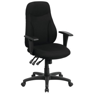 Flash Furniture High-Back Fabric Multi-Functional Ergonomic Swivel Task Chair, Black w/Adj Arms (BT9 | Quill.com