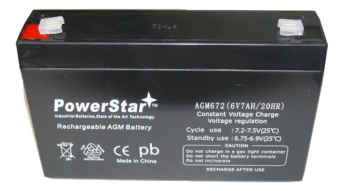 PowerStar AGM672-13 6V, 7Ah Sealed Lead Acid Battery With F1 Terminal Adapter
